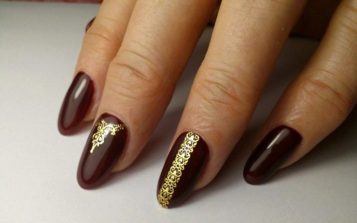 It is worth taking a closer look at your own hands and answering the question: are your fingers short or long. If they seem short, the short length should be sweep away immediately. Next look at the nail plate, noting whether a wide or short nail bed. In the first embodiment, preference is given to almonds, in the second to oval.