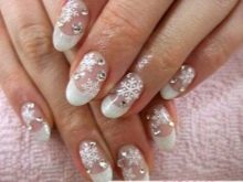 The jacket on oval nails with lace patterns looks beautiful. This design is worthy of decorating the image of the bride. At the same time, for greater chic, you can supplement the texture of some nails with pearl dust (partially or over the entire area of the nail plate).