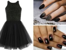Choosing a varnish for a plain dress, you need to consider some rules. First of all, a manicure should not be in the color of clothes, otherwise it will simply be lost against its background. These can be shades close to the main tone, but darker or lighter. A manicure with a pattern will look good, in which the same color is present as the dress, together with other shades. It can be a contrasting color, and vice versa, close in color to the clothes, but these colors should look harmonious.