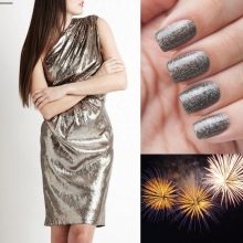 Silver plating in various combinations is very popular. You can add white, black, blue, green to it, it all depends on the color of the dress. Both white and black dress will look spectacular in combination with a silver coating of nails.