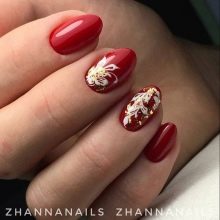 Raspberry dress will suit all shades of red with the addition of contrasting white or black. Gold or silver pattern on red nails will look very beautiful. But accessories or jewelry should be suitable for such a pattern. A cherry dress will also look good with such options.