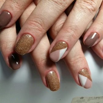 And for a golden dress, a yellow or brown design will be a good choice, but always with the addition of gold. A brown dress will also be combined with peach, yellow, orange, and gold nails. You can choose a mustard manicure with the inclusion of such shades as yellow, green, brown with the addition of white.