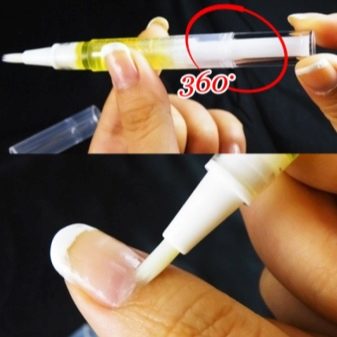 In appearance, such a tool resembles the most ordinary felt-tip pen, which has a special pointed tip. Inside such a pencil is a mixture of oils and vitamins or a special composition. Oils nourish the skin, helping to easily move the cuticle, without injuring the skin. And if you choose a pencil with a special composition in which there are various acids, then such a tool easily softens the cuticle, splits it, and after that it can be removed with a special tip or with a wooden stick. In addition, in the compositions of such funds there are also those components, due to which the cuticle growth is significantly slowed down.