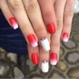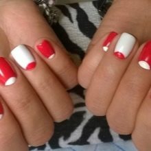 To smooth out the calling effect of a bright shade of red in a manicure, it can be combined with another color to get a more neutral universal option. The following combinations of red are extremely popular.