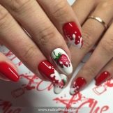 But at present, nail service masters offer their clients more interesting designs that can combine several shades of red or complement this color with others. Of the materials, girls still prefer the use of persistent gel polish in combination with rubbing, sparkles or rhinestones. And still at the peak of popularity remains the use of matte varnish.