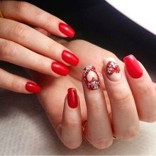 - The design for the red manicure should also be selected carefully to achieve the desired effect and at the same time not to overdo it with excessive solemnity, which will not be appropriate for everyday events, or excessive vulgarity.