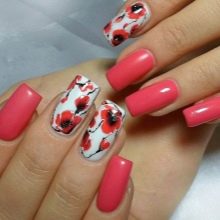 For example, poppies look impressive and unusual on nails. There are many options for how and where to place them. Ladybugs do not lose popularity, they are suitable for girls bold and original.