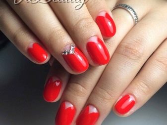 If you want rigor, then classic red is used with the addition of a small amount of rhinestones or a single image. Well damps the brightness of the color white, you can make a gradient or ombre.