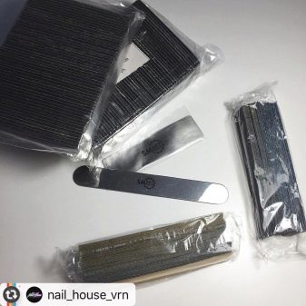 In the kit for each tool there is one file with an abrasiveness of 240 grit premium. Such nail files are usually given by craftsmen to their clients on holidays.