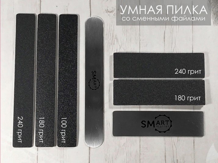 Smart nail file is a base with interchangeable abrasive plates. It is very convenient for use by professionals in nail salons, as for each client you can use a new replacement unit.