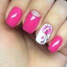 - A manicure can look very advantageous when the nails on the middle fingers are covered with light varnish, and orchids are painted on them, the nameless ones are completely covered with stones and rhinestones to match the main color, and all other nails are covered with a pink shade. Such a manicure will be an excellent solution for creative women, as well as for ladies who want to get a good mood for every day.