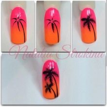 It is not necessary to draw a palm tree on each finger - for example, for greater originality, you can draw them on only one finger or on two nails of each hand. Here you need to build on whether the mistress of the nails is going to go on vacation, and maybe you just need to add brightness to your hands and still sit in the office and work.