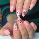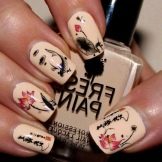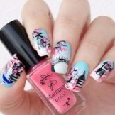 If you don’t feel like wasting time on a salon, but you don’t get a complicated picture or nothing, you can use special stickers. In the absence of the necessary in stores, you can also purchase special adhesive paper for the printer and print the necessary drawing. After printing, it will need to be cut, glued to the nails and be sure to cover with a transparent fastener on top. Otherwise, the stickers will quickly move away from the base varnish and be lost.