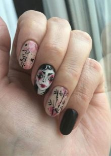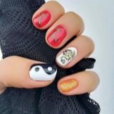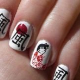 In this case, nails can be decorated with sakura, irises, mountain maple or contour landscapes in the form of mountains and moonlit nights. And the red circle on a white background will become an image of not just the flag of Japan, but a solar disk in the sky. You can also use special polymer miniatures, which are sold in specialized stores. Such miniatures in the form of sushi or other Japanese attributes are also well suited.