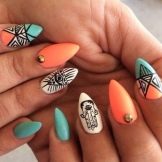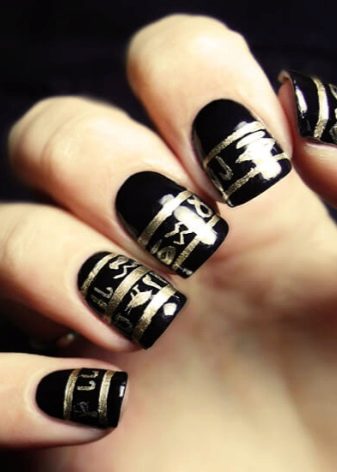 They can also be purchased in Latin America or ordered in the online store. The traditional colors for such a manicure are black, ocher, light brown, dark brown, white, yellow, gray-blue. Matte shades are used more often and sometimes they add gold. This color is best suited to the Mayan culture.