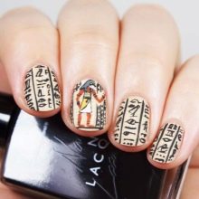 The main hieroglyphic systems that are suitable for manicure design are Chinese, Egyptian and Maya. There are also two Japanese syllable alphabets that are familiar to all fans of anime and Japanese films, but some people only unknowingly call them hieroglyphs. In fact, in Japan and Korea they also use hieroglyphs, but these are the same Chinese, and the rest is their own alphabets.