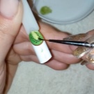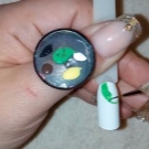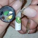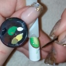 - The nails of the thumb, as well as the ring and little fingers, are painted green. Kiwi will be painted only on the nameless and little finger. The thumb will remain solid.