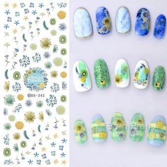 Another original way is to apply a picture not on the entire nail, but on its part. These fruits with droplets look beautiful and interesting.