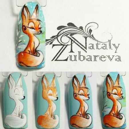 - Do not repeat the drawings on two hands exactly. Figure out the legs, part of the fluffy tail, or the fox profile. So the manicure will look more interesting.
