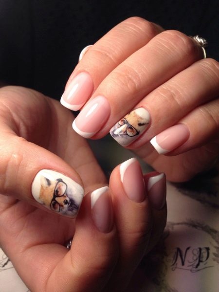 Two techniques are well suited for fox manicure: classic and French. The classic way is ideal for decorating accents, moreover, it looks easy and expressive. French is attractive in that it emphasizes the natural nail plate, which is fashionable today. Pictures on unpainted or deliberately camouflaged nails look beautiful, and the French jacket allows for a fancy smile design.