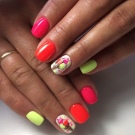 Summer bright manicure with ice cream is considered to be informal, one that is suitable for going on vacation, going to the beach, sailing on a yacht, visiting hot summer parties. It is difficult to disagree with this, but it is quite possible to challenge. It's all about the fine line between “elegant manicure with a touch of coquetry” and “bright manicure torn” - it all depends on the method of its execution, the number of bright accents and design. Properly selected manicure with ice cream can be a decoration of any image and fit into any situation.