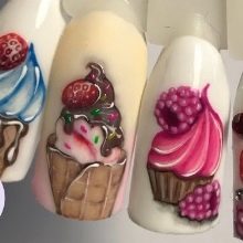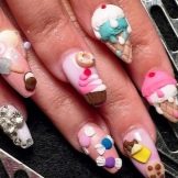 - Ice cream made by modeling will also look relevant. Such a manicure will be the most voluminous and realistic, and therefore unusually catchy.