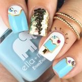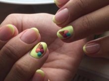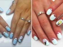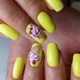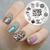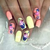 The easiest way to apply a picture to your nails, which you can implement yourself - This is a manicure with ready-made slides, stickers or metal applique. To carry out such a design, it is only necessary to prepare a high-quality base, glue the slides on it and cover it with a fixative. In the market for manicure accessories you can find the most unimaginable sets of slides depicting desserts, you can also easily find voluminous stickers for manicure.