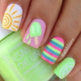 Summer is a small life. In this sunny bright season, I so want to “catch” the brightness of the blooming, luminous colors of nature. Right now, a bright, rich manicure with a catchy pattern will become most relevant. Why not decorate your fingers with colorful balls of ice cream? Such a manicure will not only give the image of playfulness, but also attract the attention of others. Beautifully executed designs with ice cream - this is a universal option for the summer, which will soon go out of fashion.