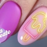 To create a juicy manicure, you can use a stamp. To do this, you will need a stencil with a carved ice-cream pattern, a special stamp for manicure and multi-colored varnishes. According to the principle of coloring, you need to paint the stencil with varnishes, remove the excess varnish with a special spatula, remove the pattern from the stencil to the stamp and transfer it to the nail. This method is great for creating a design with many identical ice creams.