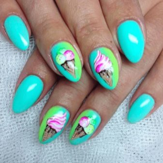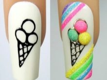 There are a huge number of ways to create a manicure with the image of ice cream. Some of them can easily be made at home independently, while others are almost impossible to apply to yourself without outside help.