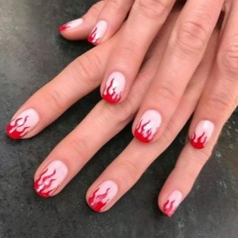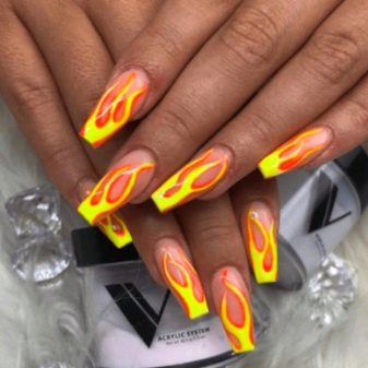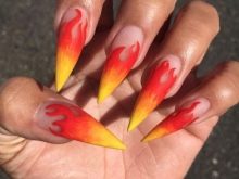 There are a lot of ideas for nail design with the element of fire. First of all, the corresponding saturated colors are used: bright yellow, red, orange, dark pink.