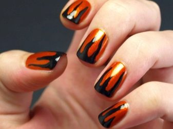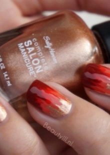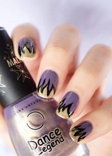 - Manicure specialists use gold and shiny varnish for the fiery design. They can draw the contours of the flame.