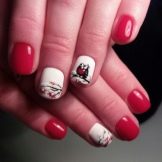 Bullfinch is a pretty popular design in the winter. The red-breasted winter guest looks very beautiful on a blue background symbolizing snow. Romance and magic will add snowflakes to this design. The bird sitting on a branch of a mountain ash with bright ripe berries looks even more spectacular. A bullfinch gently and feminine flames on a white jacket. This feathered friend is beautiful in manicure made in stained glass technique. Clusters of mountain ash can be made using the molding technique - this will give the design even more expressiveness.