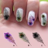 If the master knows how to draw beautifully, then he will not have this question. However, a novice specialist can easily and quickly learn this simple art. If the drawing skills are not yet honed, then you can use standard stickers. A large number of them are offered, mainly peacock feathers, which should be used as a design with the image of a firebird. Another option is the use of a special artificial feather. They are not so often found in specialized stores, but miniature feathers of any color will be brought to order. To decorate the magic feathers, you can also use different techniques - foil, rhinestones, sparkles, pebbles.