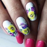 As for the disadvantages of manicure, first of all, their fragility refers to them. Often, masters use decorative elements to create the image, and if the client delays with a subsequent visit for correction, then, most likely, she will lose all the details. Of course, this does not apply to hand-made designs. Another drawback of such a manicure is the difficulty in applying the design to itself.