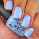 First of all, the nail plate is covered with a thin layer of white gel polish and dried in a lamp. After that, a blue color is applied to the nail in a chaotic manner. Then, without cleaning the brush, add green (you can also use a bright blue color) strokes and dry the nail again.