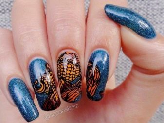 This is not the first year that marine subjects have been among the most popular areas in nail art. Of particular popularity in recent years has gained a manicure with goldfish of various shapes and sizes.