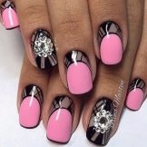 It seems that pink manicure with rhinestones is already a finished option. But, trying to show their individuality and trying to create a unique design, many beauties are not limited to just pebbles.