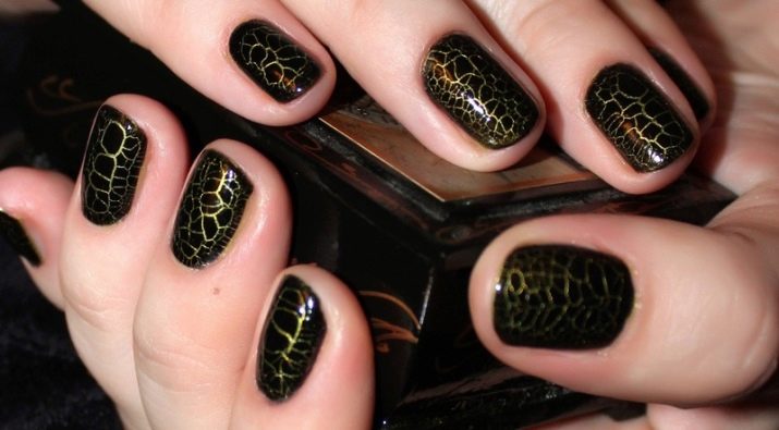 Certain types of coatings are able to create a kind of decorative visual effects. These include craquelure and cat's eye varnishes. The first imitates a patina, that is, a coating on antique furniture and paintings, as well as paint cracked over time. In this case, the upper layer is cracked, and from under it appears the color of the lower substrate.For this type of manicure, as a rule, choose black or chocolate color paired with gold or copper.