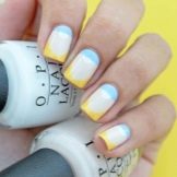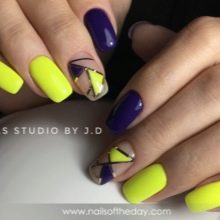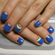 The combination of such colors is a wonderful option for a solemn manicure. If a girl does a festive manicure, it is necessary to use rich and vibrant shades. As in the case of the neutral option, you can design in blue. Yellow should also highlight several nails.