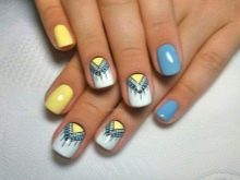 If you use the tips correctly and do not try to make the manicure too bright, then any woman will be able to create an incredibly sensual, elegant look, the highlight of which will be a creative and unusual nail design.Blue and yellow are incompatible colors only at first glance. If you remember the rules and use them, you can see that such shades are in perfect harmony with each other, allowing the lady to feel more confident, attractive and feminine. The main rule of such a manicure: do not make it too flashy, otherwise the image may be damaged.