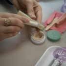 After preparation, the main stage of manicure begins. Mineral paste is applied to the dried surface of the nail plate. This can be done using a plastic pusher (if you use P. Shine) or a wand (if you work with Masura).