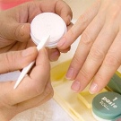 A preparation is applied to the cuticle to soften, wait a couple of minutes, then the cuticle is pushed back and all the remaining oil is removed.
