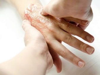 After a massage session, as a rule, an exfoliating composition is applied that removes all dead cells and makes the hands smoother and softer, and then use a special moisturizing gel based on ylang-ylang, jasmine or rose oils.