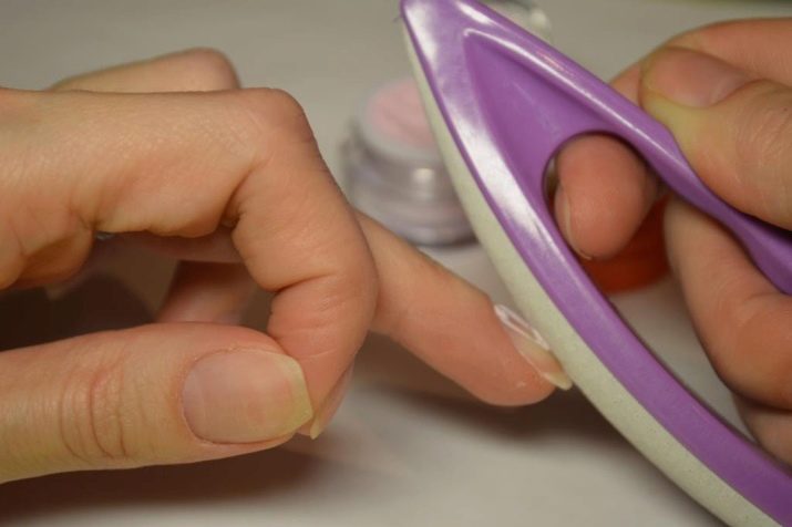 At this stage, the nails become tight and strong, but hand care procedures do not end there. - you need to fix the effect. To do this, apply glossy dust to the nails, distribute it with a special buff to sharp movements in various directions. Such dust contains wax and effectively seals the nails for a couple of weeks. Such protection does not dissolve in hot liquids, does not lose its resistance under the influence of alcohol, as well as chlorine and weak acid-base solutions.