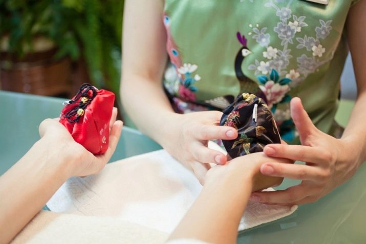 The technique of Japanese manicure involves another important step - with a special desire, every woman can pamper her skin with an additional massage. This final touch is designed to relax a woman and give her the most positive emotions. To this end, resort to massage using cold or warmed silk bags, which are called "Atsui". They are filled with herbs, salts and nutritious aromatic oils. The salt soaked with them retains heat and coolness, and herbs exude the most pleasant aromas, adding a touch of charm and romance to the care procedure.