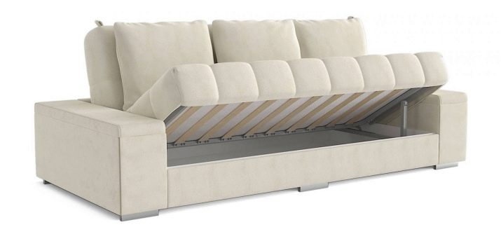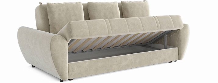 The click-gag scheme differs from the one just described by small improvements. You can always adjust the angle formed by the back with respect to the seat. A linen box is present. The total size of the sofa will be relatively small.