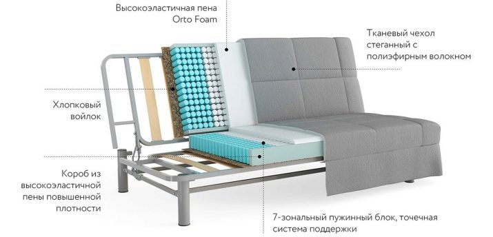 The Sky Velvet 16 sofa stands out in this group. It is mainly painted in gray tone. For the manufacture of such a model, a mattress is used, divided into 7 working zones. It has no armrests, which allows you to save space without affecting the quality of sleep.