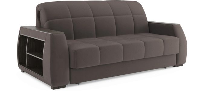Similar sofas are presented, for example, brown New Casanova espresso model. The functional mechanism of the "accordion" is performing as well as possible. It was possible to add external appeal due to square stitches. The height of the block of autonomous springs is 0.025 m. The Sunset model allows you to embed decorative shelves in the armrests.