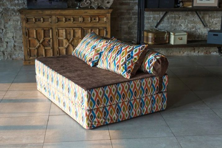This group includes modifications of two types with a berth: folding poufs and variants of a modular type. The products of the first group consist of two filled mats, packed in internal and external covers. In addition, they are equipped with rollers and pillows. If necessary, these sofas are folded into comfortable and compact poufs.